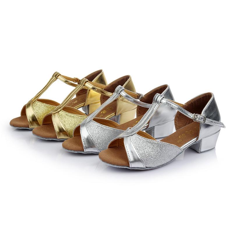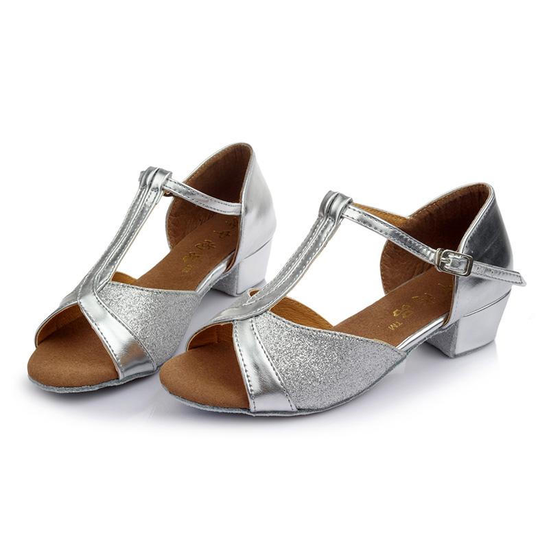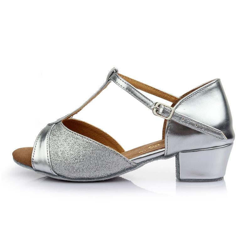 Kids Microfiber Leather  Glitter Heels Latin With Buckle Dance Shoes