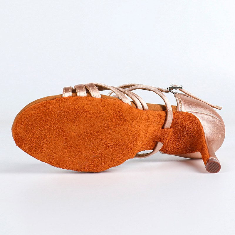 Women's Semi Crystal 5 Straps Dark Brown Satin Latin Dance Shoes