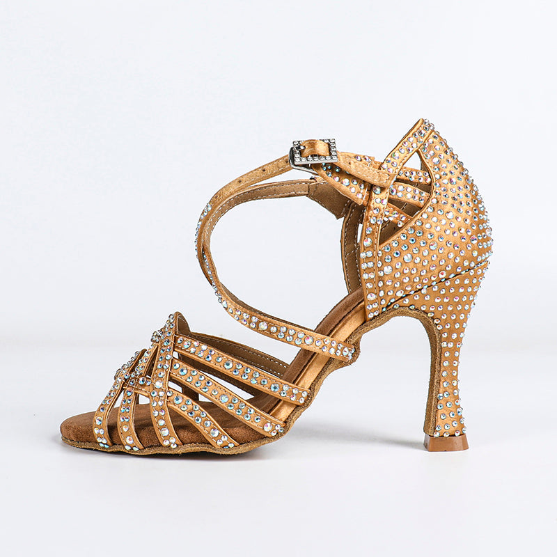 Women's Satin Rhinestone Customized Heel Ballroom Dance Shoes Latin Dance Shoes
