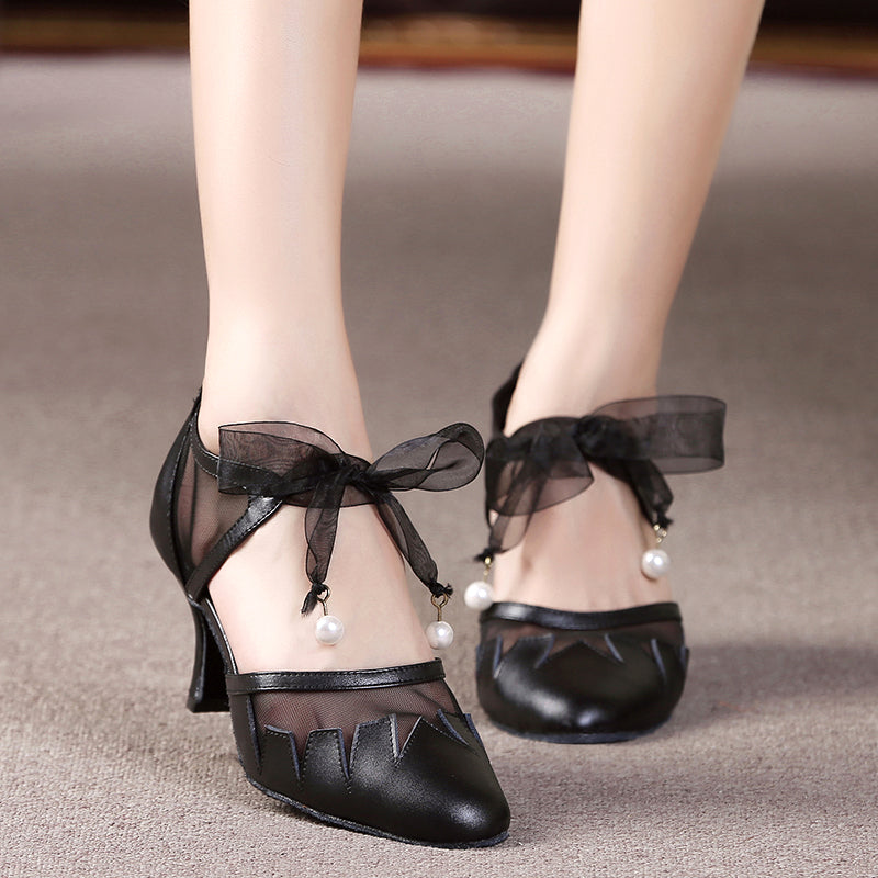 FHX Women's Lace Up Leatherette Customized Heels Ballroom Dance Shoes Modern Shoes