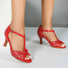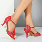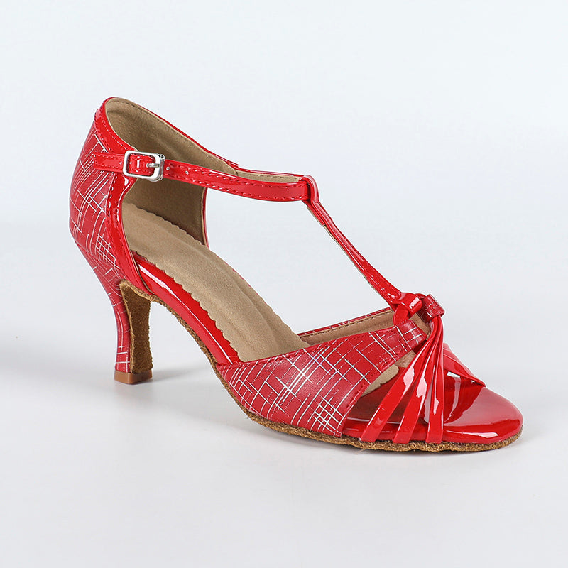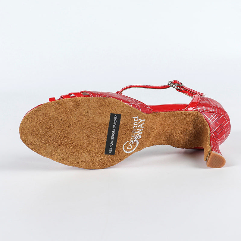 DS Women's Red PU Customized Heel Latin Shoes Ballroom Dance Shoes