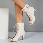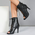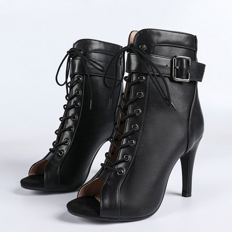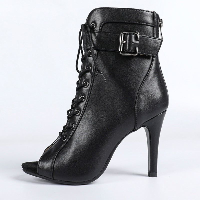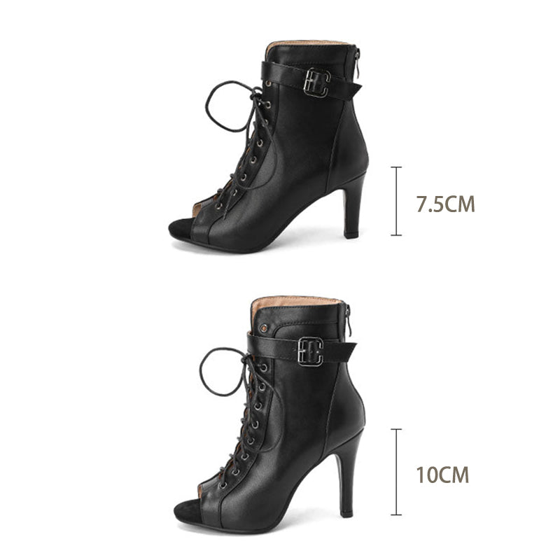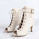 Women's 7.5cm/10cm Slim Heel Leatherette Rubber Sole Peep Toe Lace-up Jazz Shoes Dance Boots