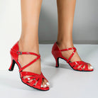 DS Women's Red PU Customized Heel Latin Dance Shoes Ballroom Dance Shoes