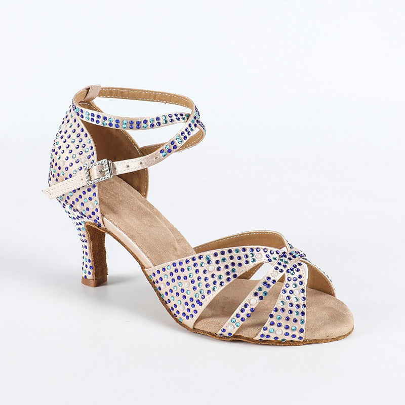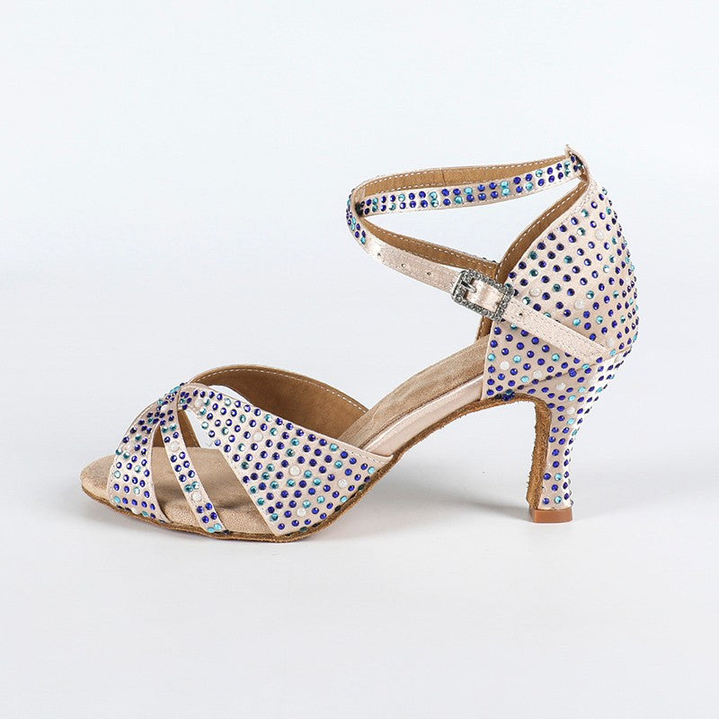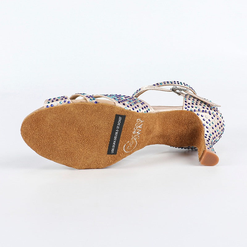 DS Women's Apricot Satin Customized Heel Latin Dance Shoes Ballroom Dance Shoes