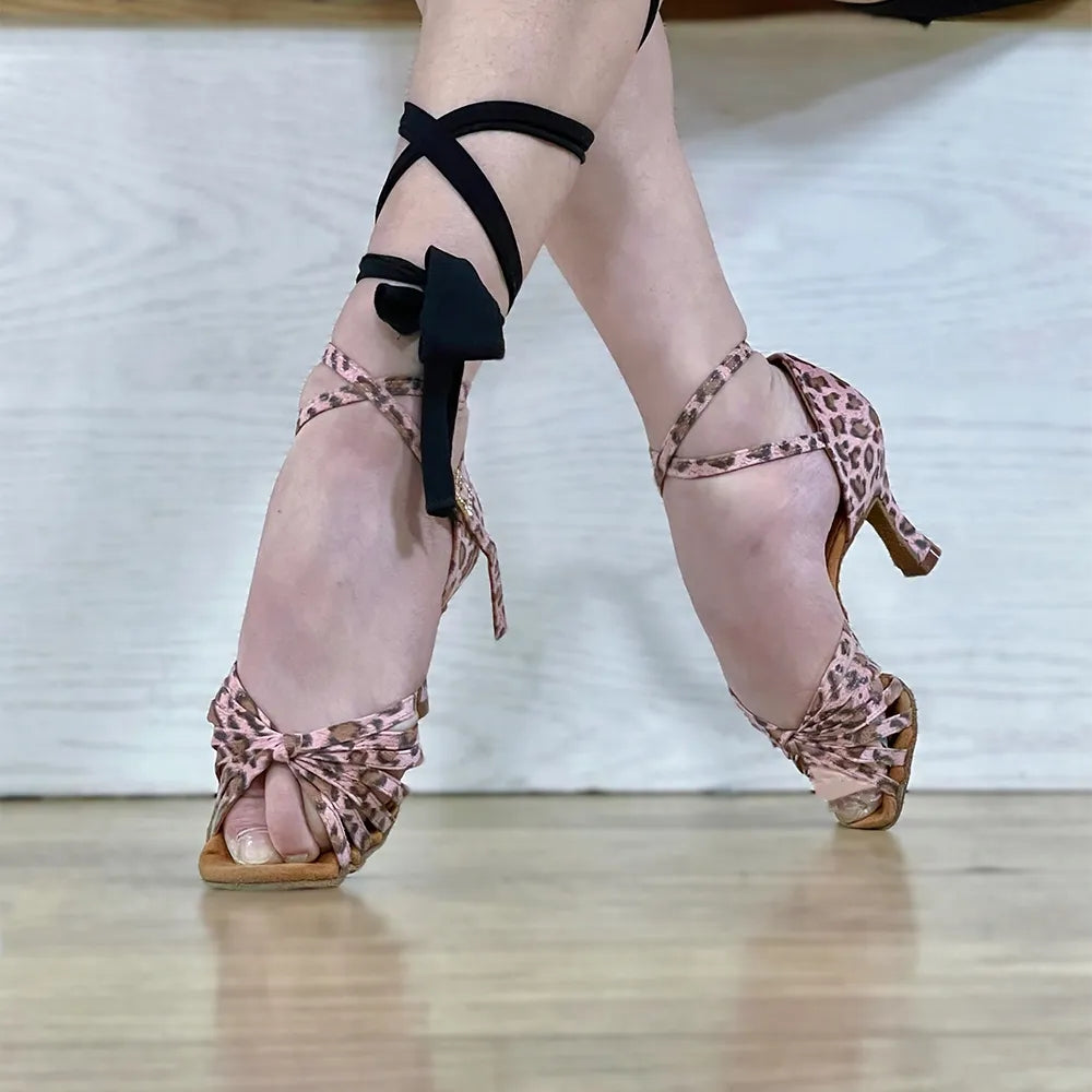 KCDANCE Women's Suede Leopard Print 7.5cm Heel Ankle Strap Latin Dance Shoes Ballroom Dance Shoes