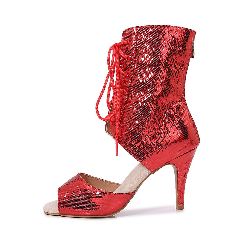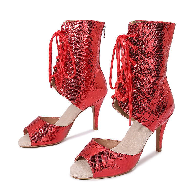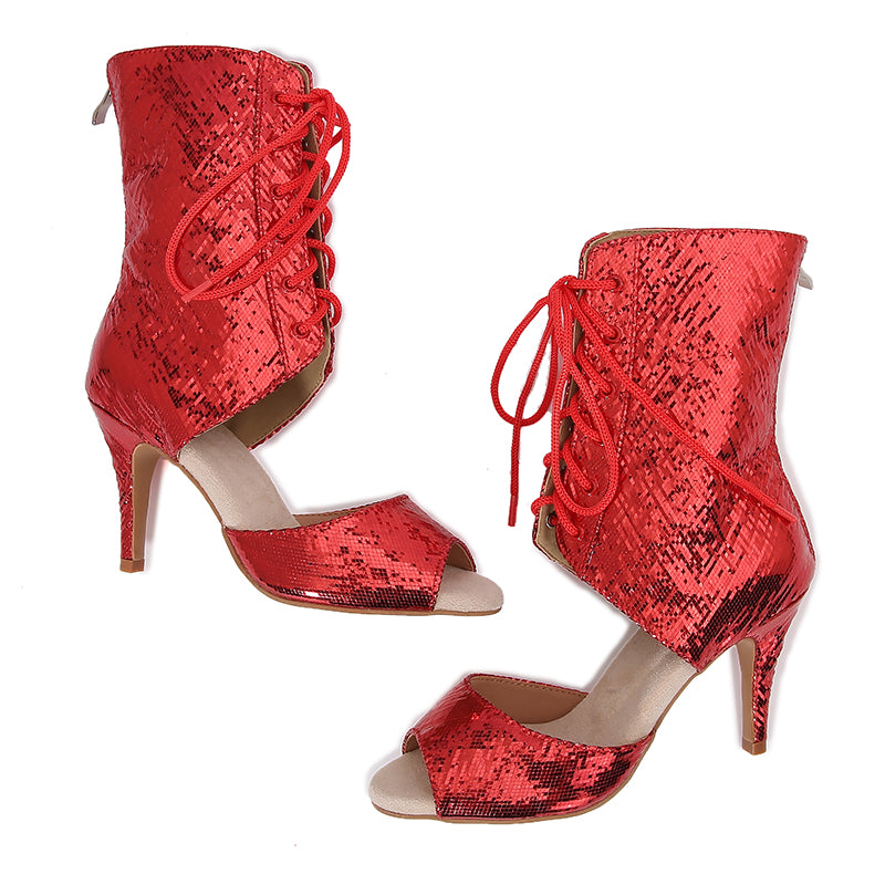 Women's Red Customized Dance Heels Rubber Sole Peep Toe Lace-up Jazz Shoes Dance Boots