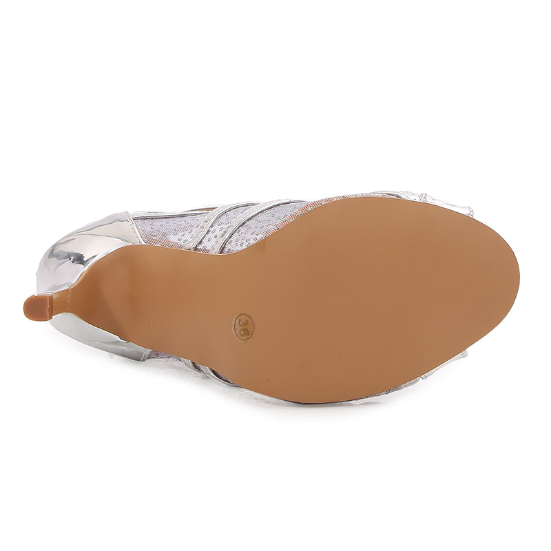 Women's Silver Customized Dance Heels Rubber Sole Peep Toe Lace-up Jazz Shoes Dance Boots