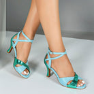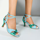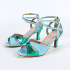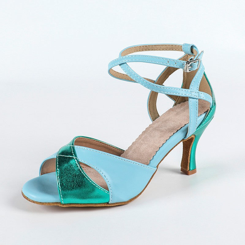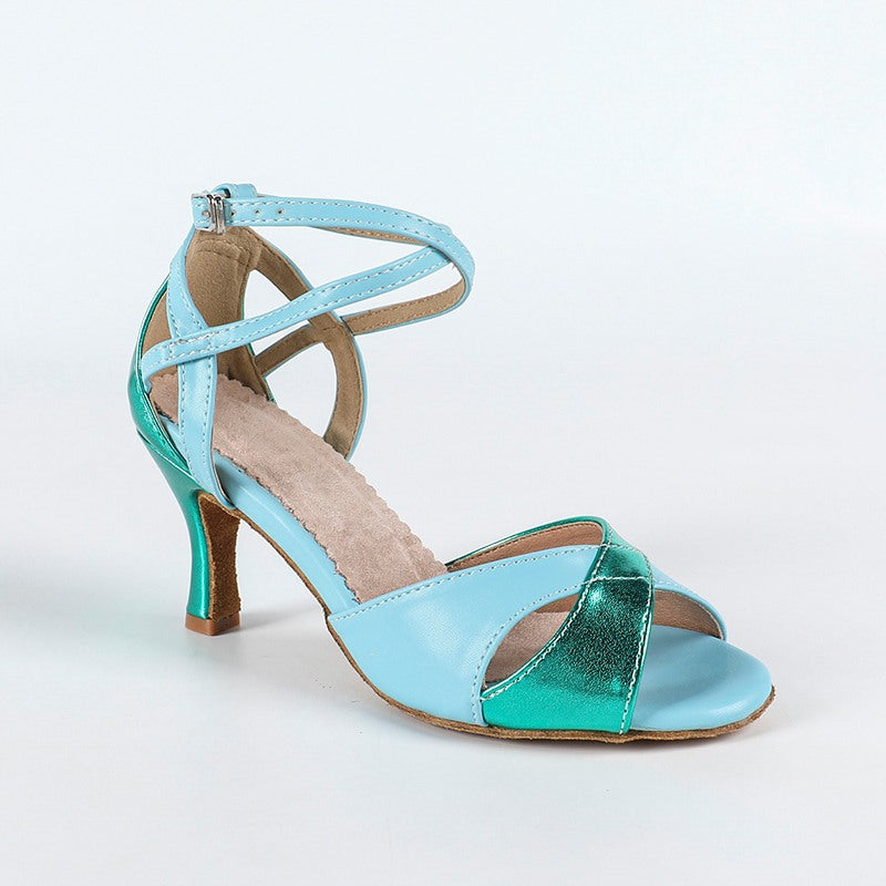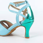 DS Women's Blue PU Customized Heel Latin Shoes Ballroom Dance Shoes