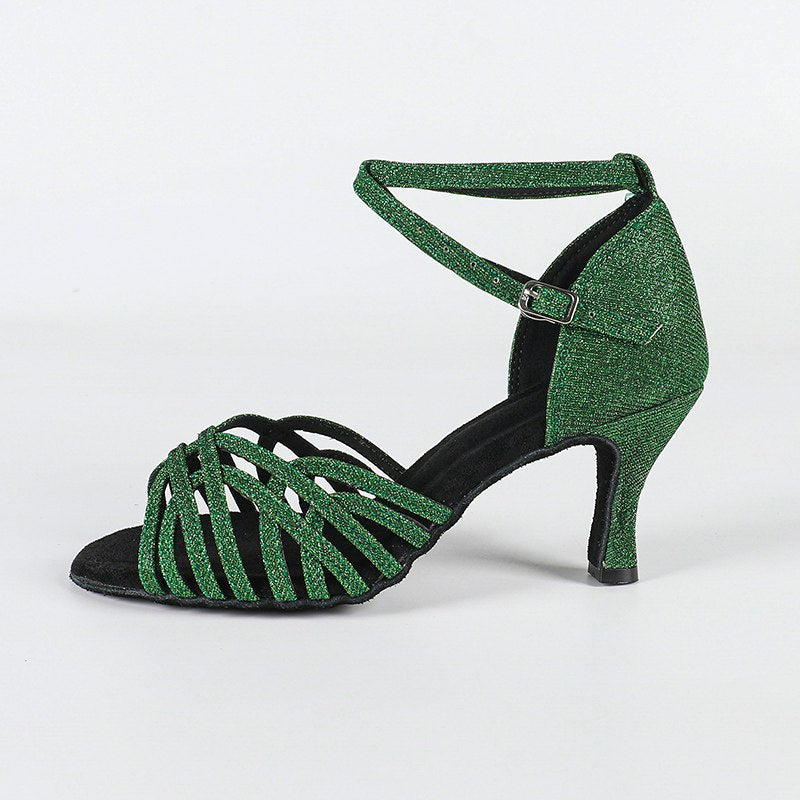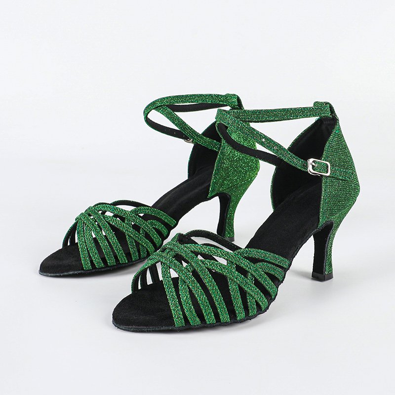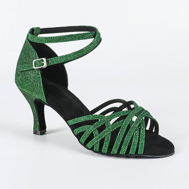 DS Women's Green Gliiter Customized Heel Latin Dance Shoes