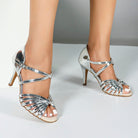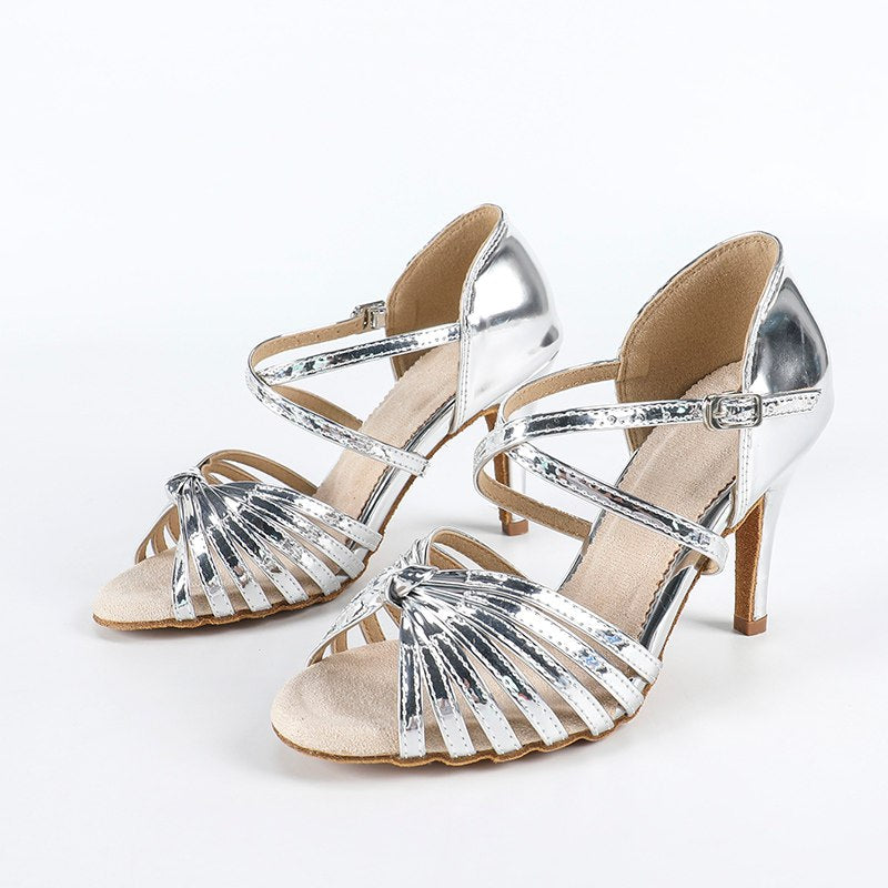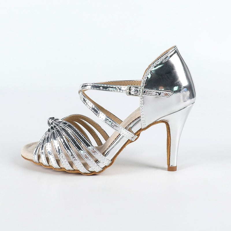 DS Women's Silver PU Customized Heel Latin Shoes Ballroom Dance Shoes