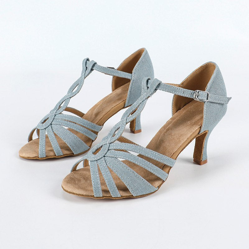 DS Women's Demin Customized Heel Demin Latin Shoes Ballroom Dance Shoes