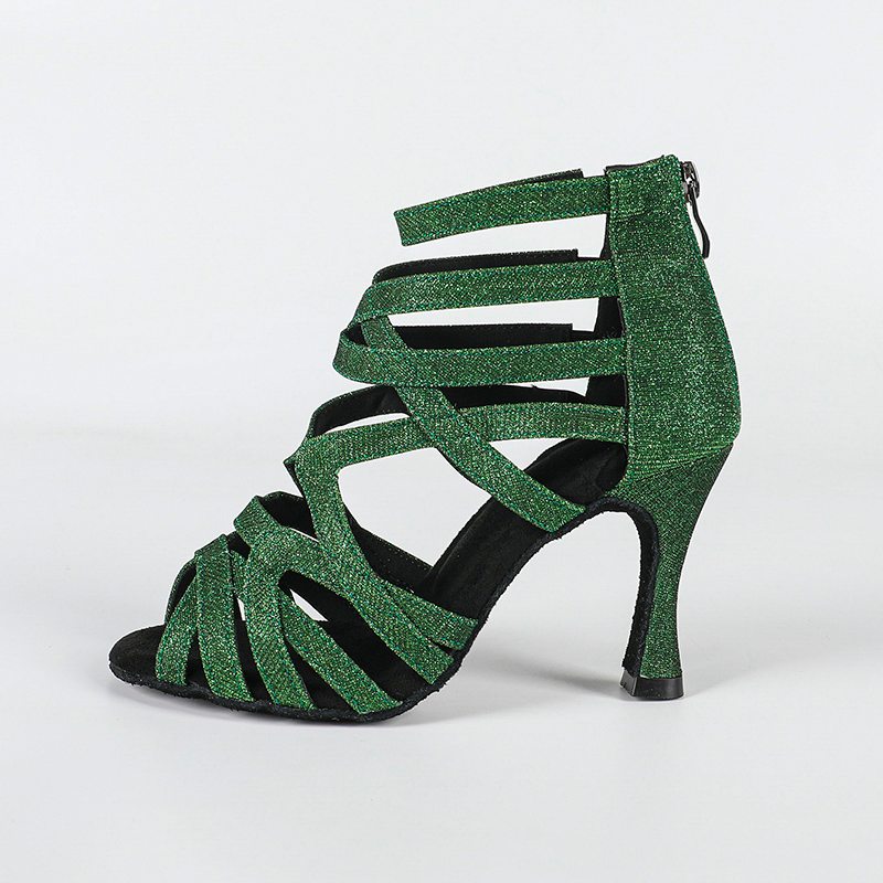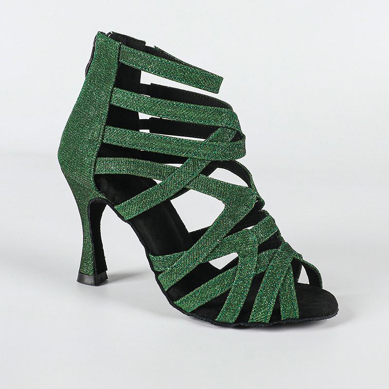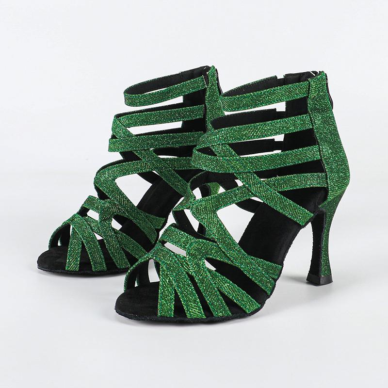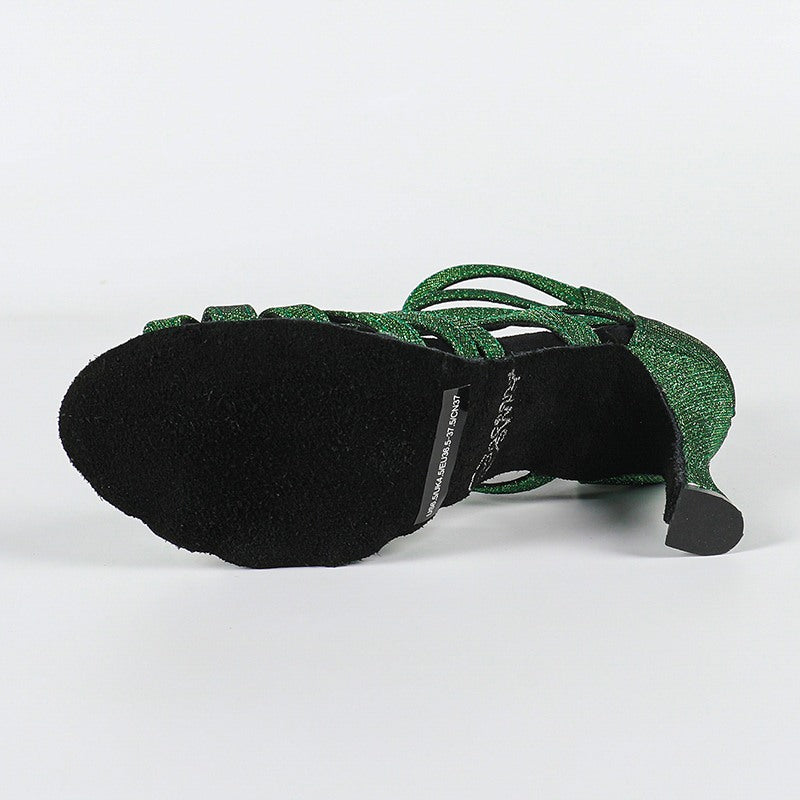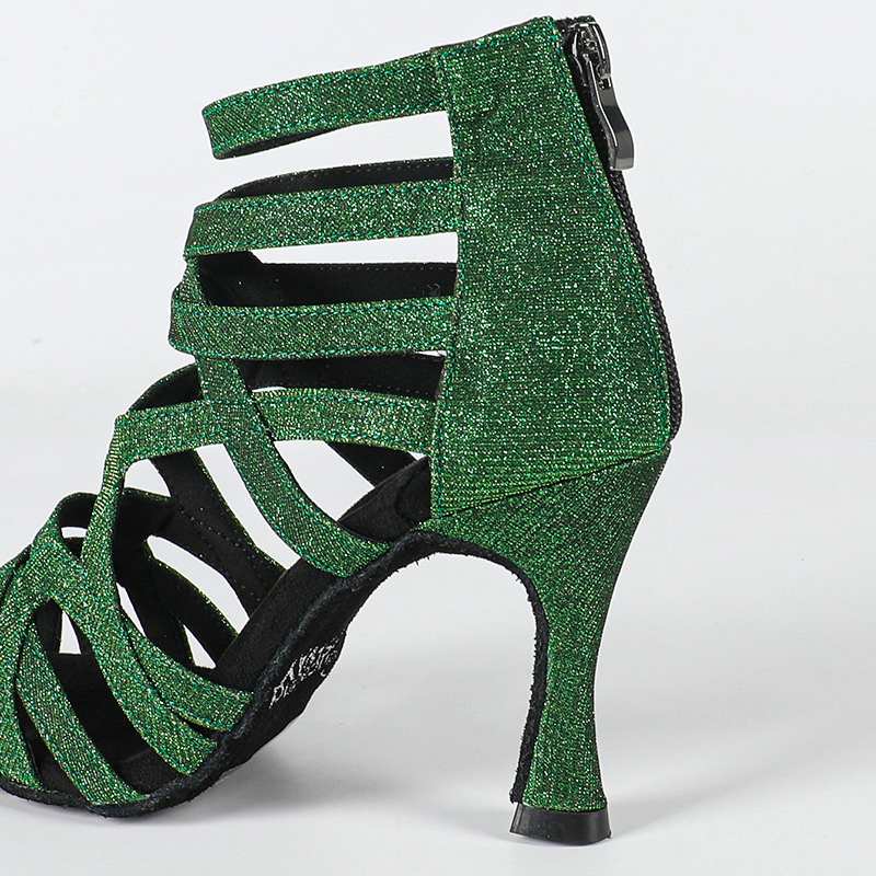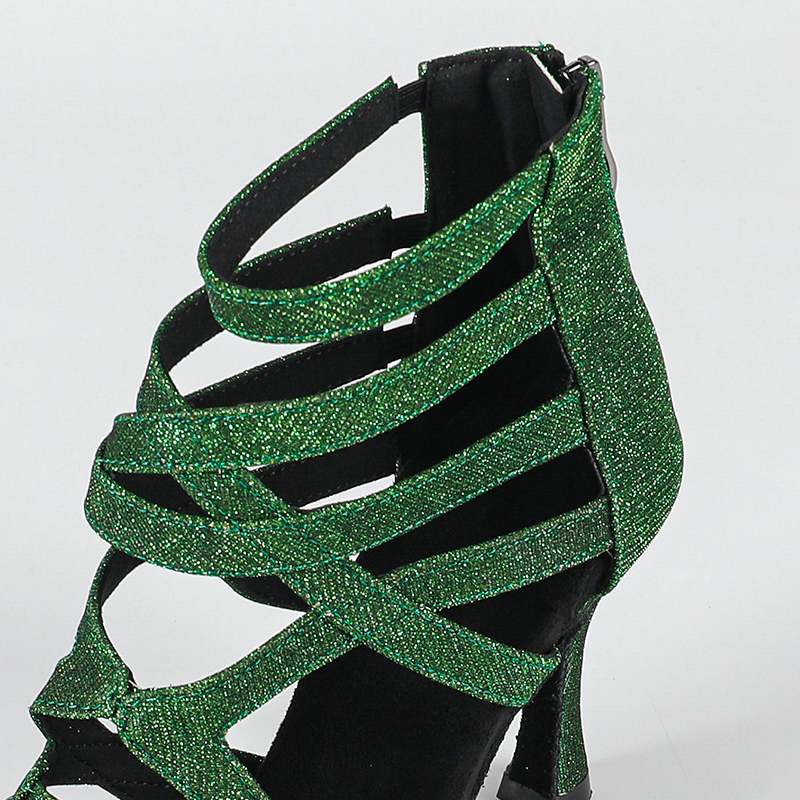 Women's Green Gliiter Customized Heels Dance Boots Jazz Salsa Dancing Shoes