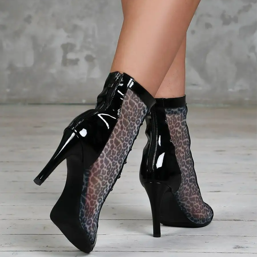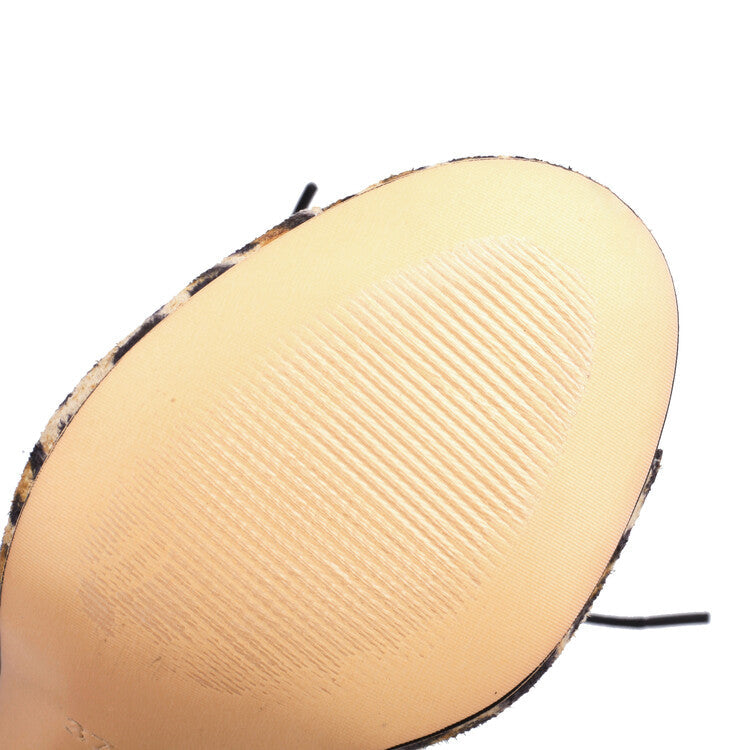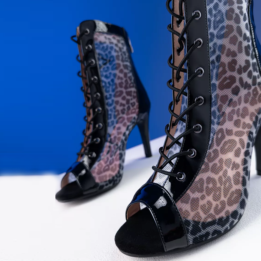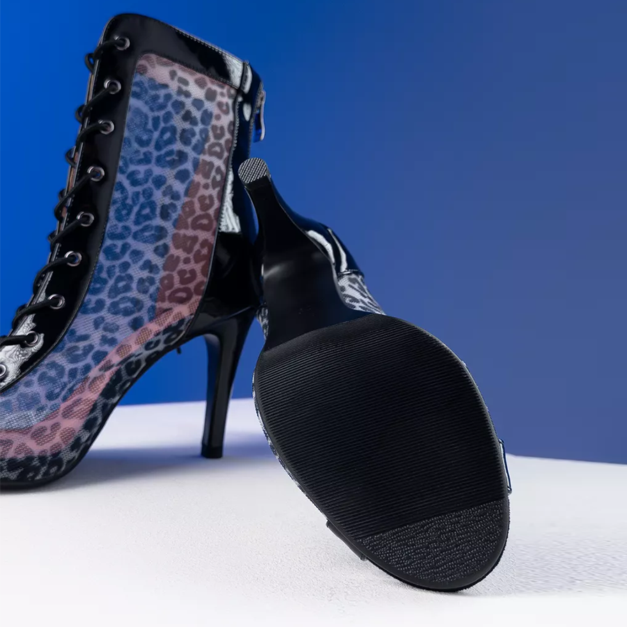 Women's 7.5cm/10cm Heel Rubber Sole Leopard Print Leatherette Jazz Shoes Lace-up Dance Heels Boots