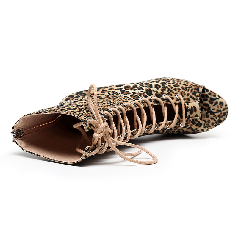 QJW Women's Customized Heel Rubber Sole Jazz Shoes Lace-up Dance Heels Boots