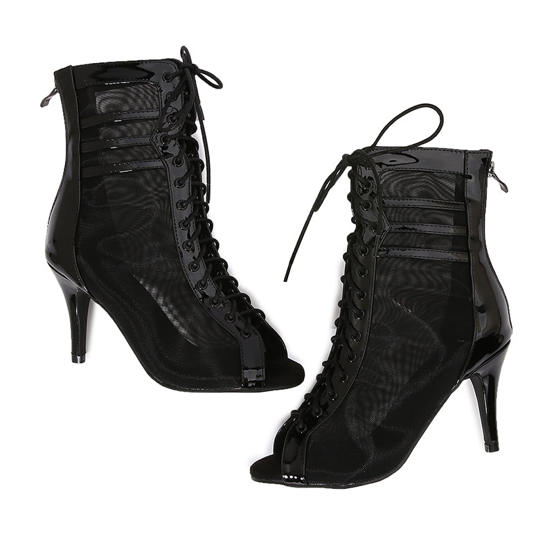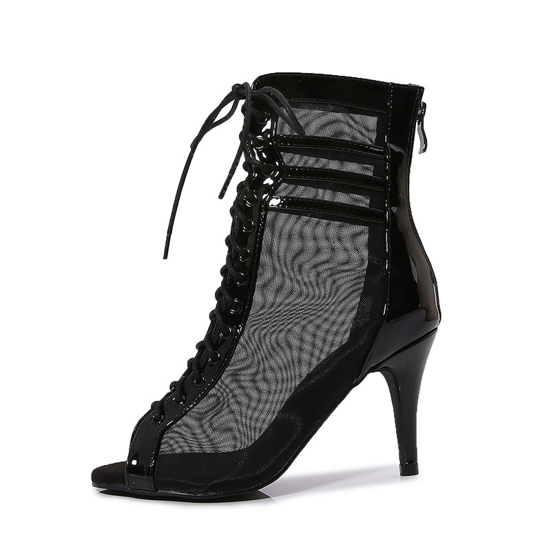 Women's Black Customized Dance Heels Rubber Sole Peep Toe Lace-up Jazz Shoes Dance Boots