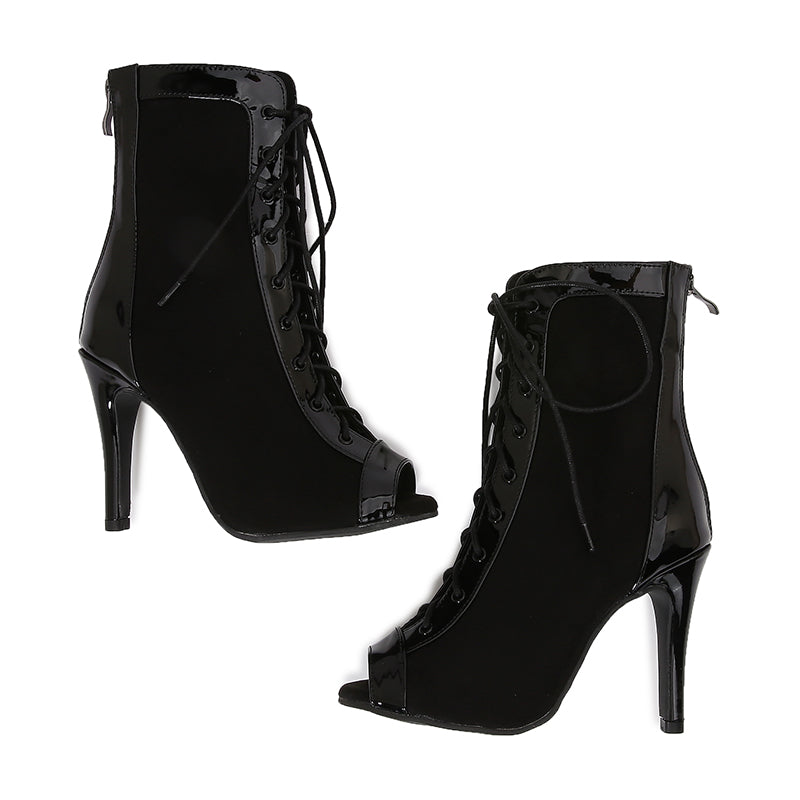 Women's Black Customized Dance Heels Rubber Sole Peep Toe Lace-up Jazz Shoes Dance Boots