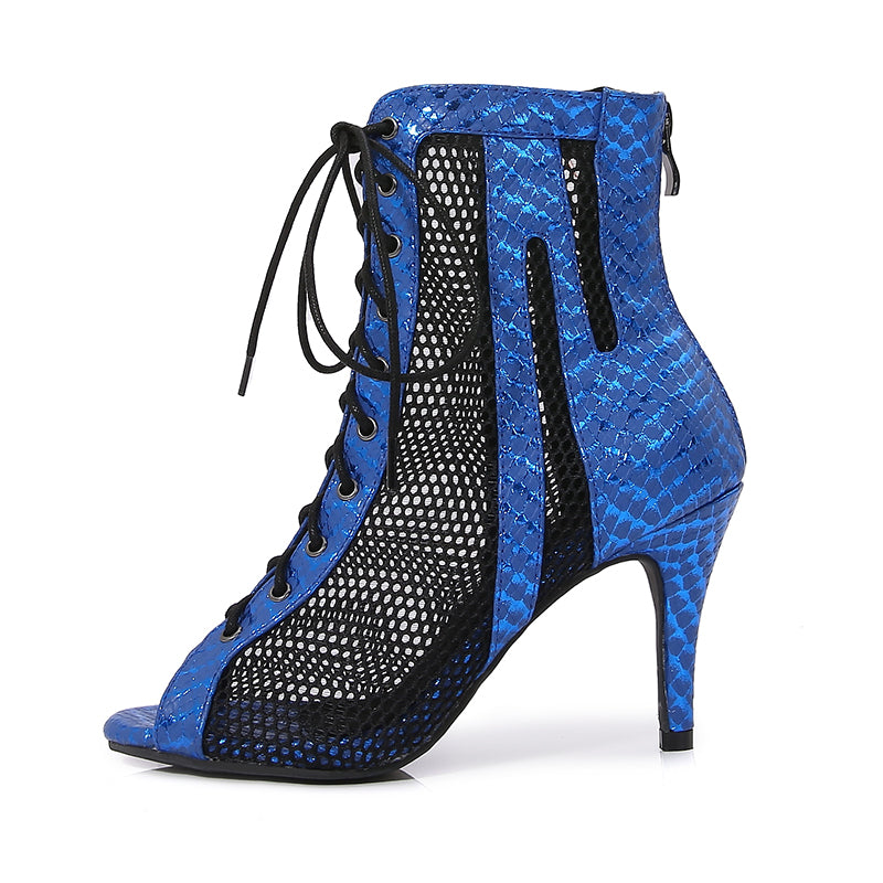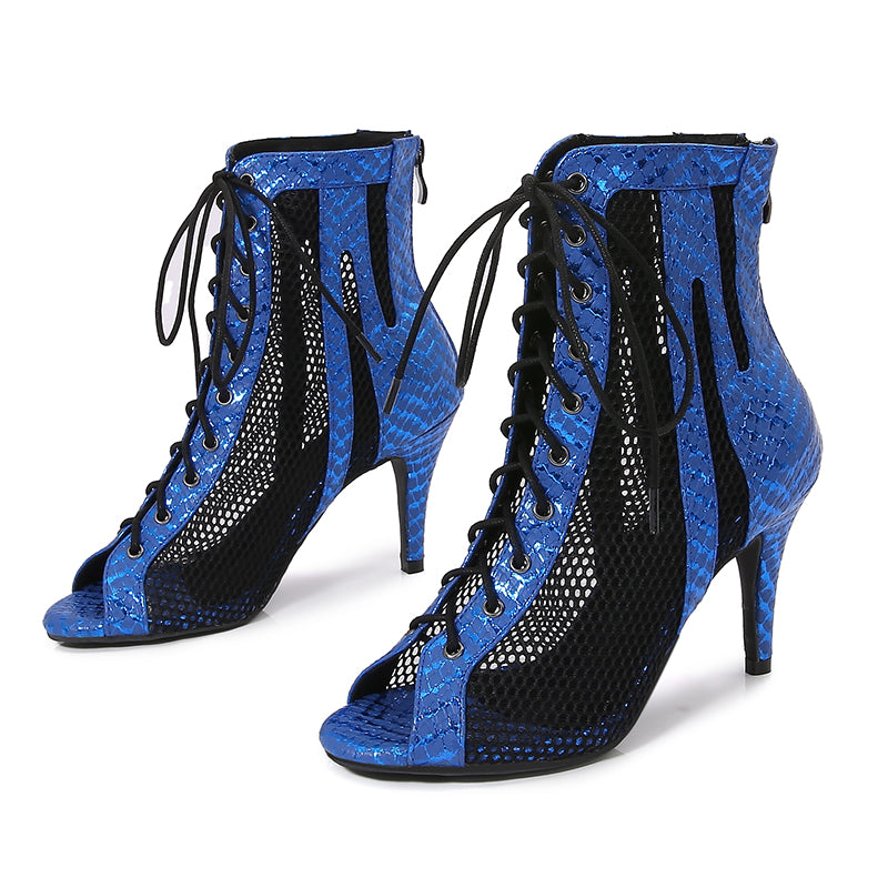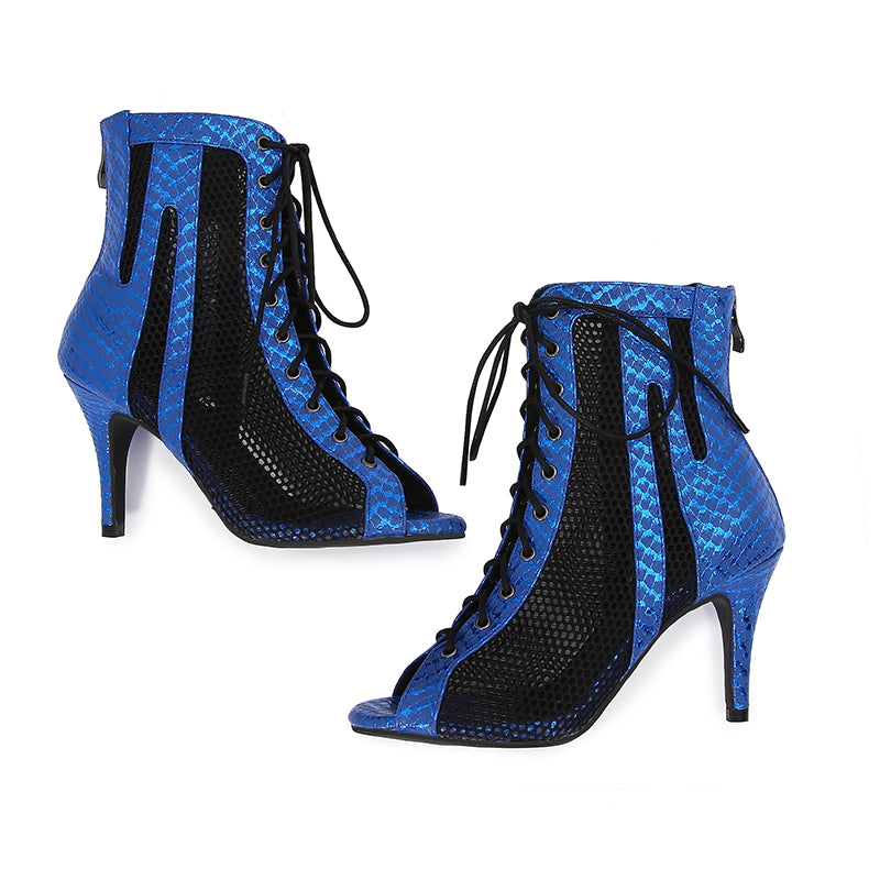 Women's Blue Customized Dance Heels Rubber Sole Peep Toe Lace-up Jazz Shoes Dance Boots