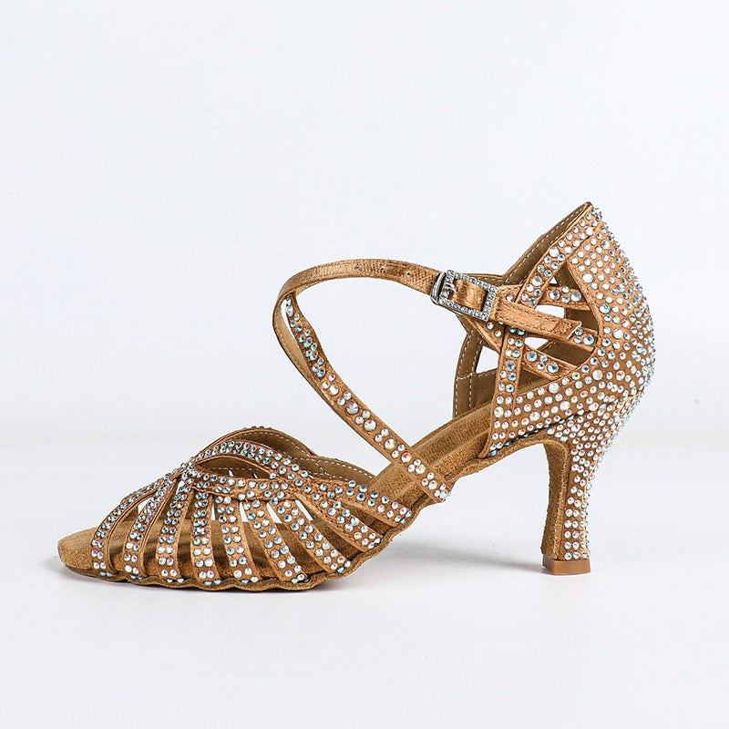 Women's Satin Rhinestone Customized Heel Ballroom Dance Shoes Latin Dance Shoes