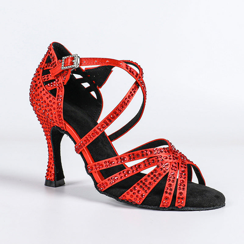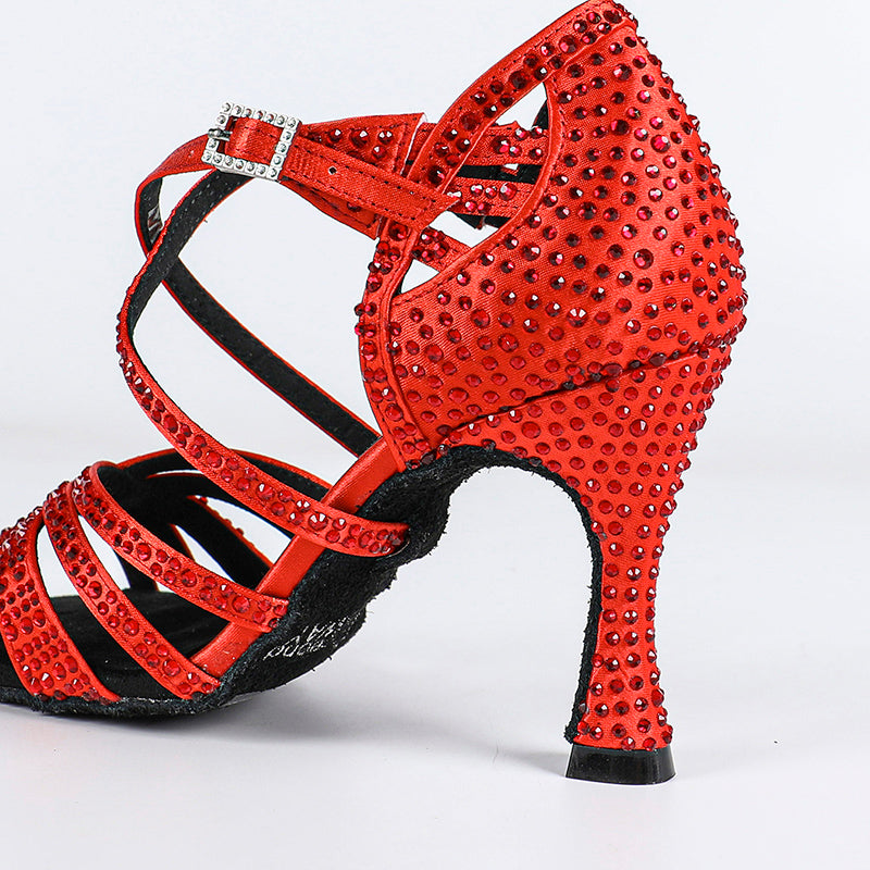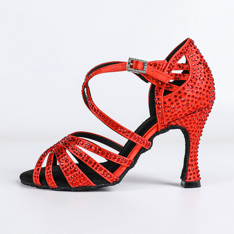 Women's Satin Rhinestone Customized Heel Ballroom Dance Shoes Latin Dance Shoes
