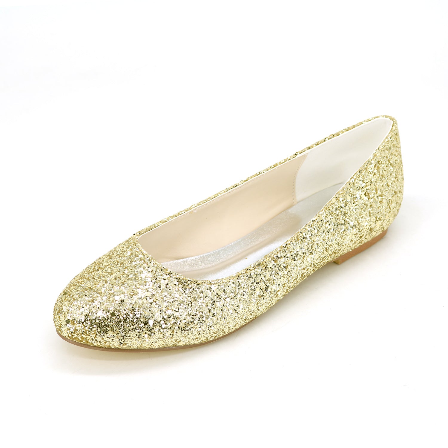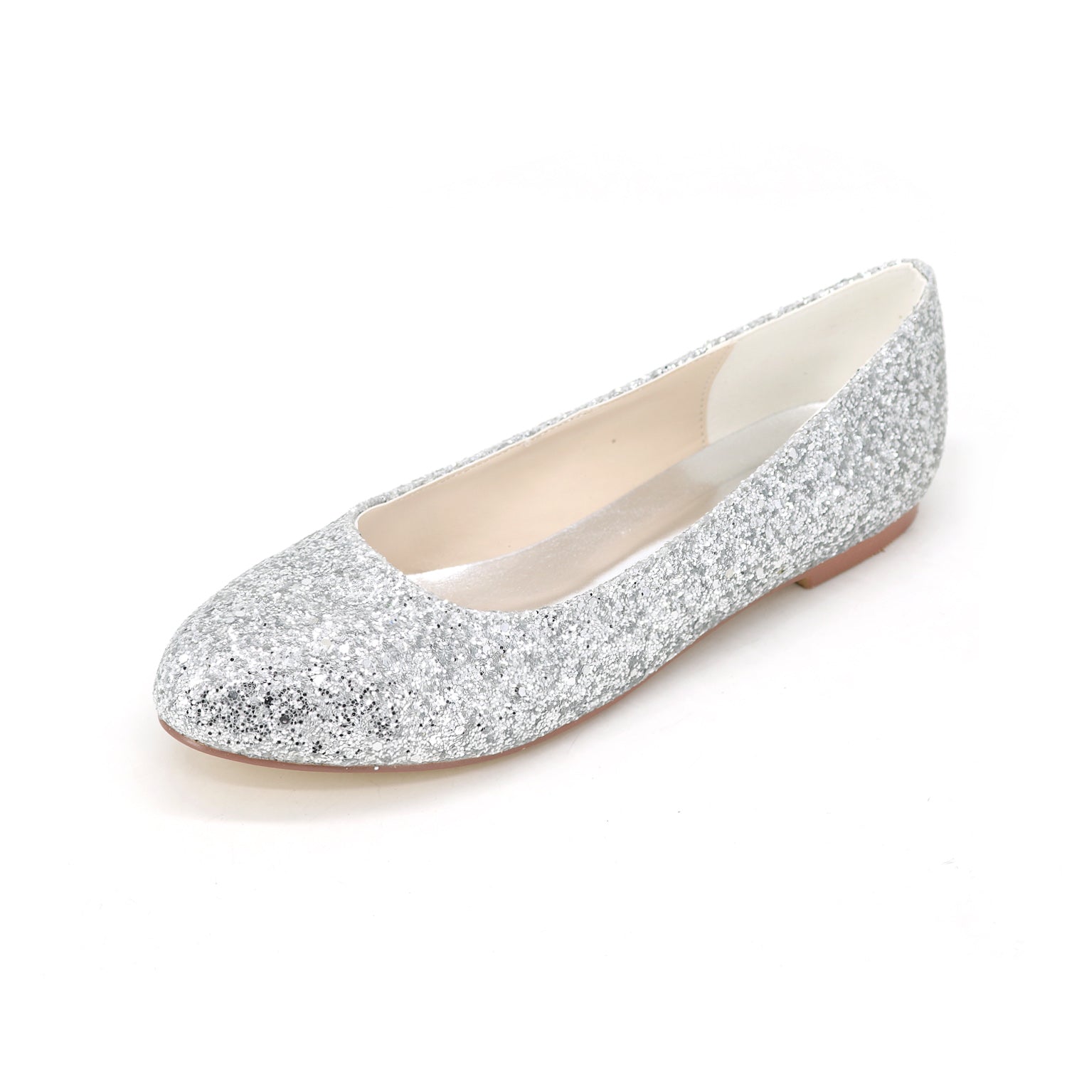 Women's Leatherette Flat Heel Flats With Sequin Wedding Shoes Bridal Shoes