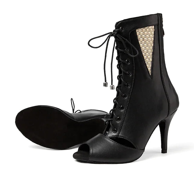 DS Women's Leatherette Customized Heel Dance Boots Salsa Shoes Ballroom Dance Shoes