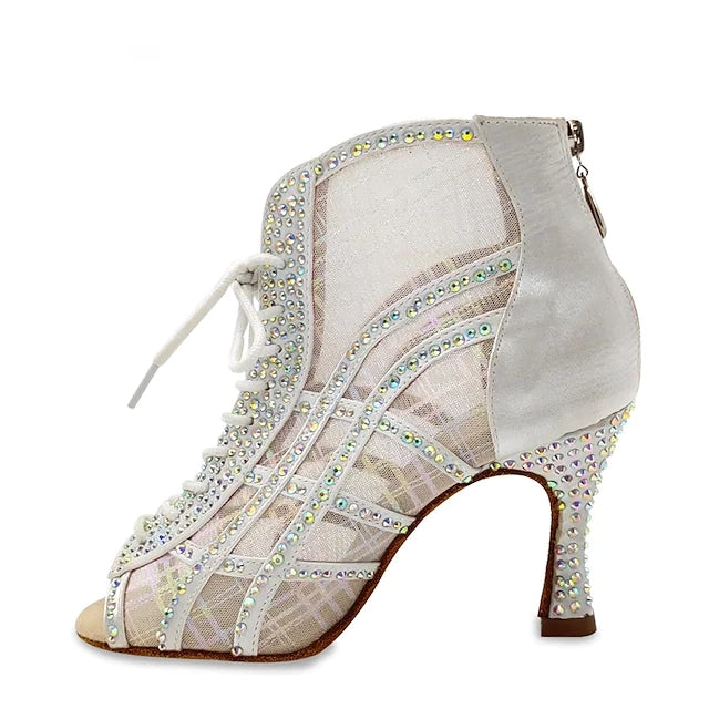 DS Women's PU Leather Customized Heel Dance Boots Salsa Shoes Ballroom Dance Shoes