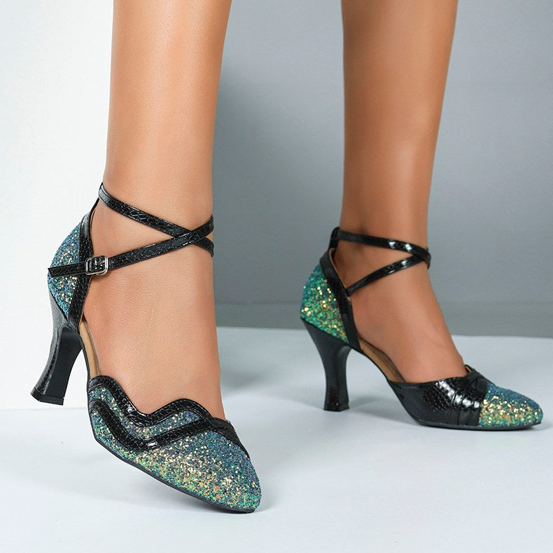 Women's Sparkling Glitter Customized Heel Ballroom Dance Shoes Modern Shoes