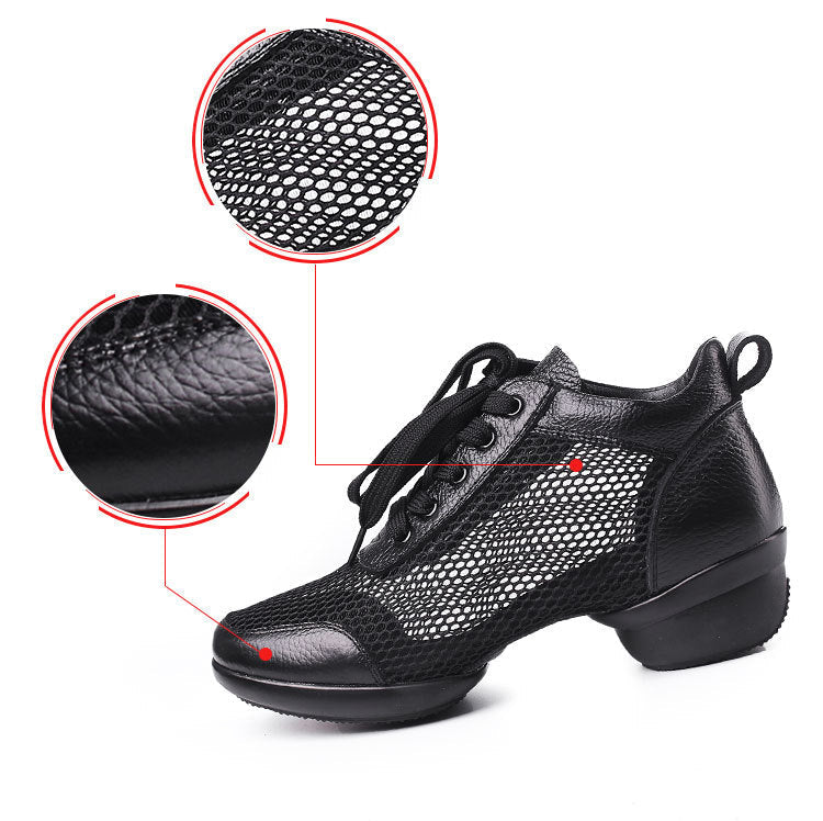 Women's Leather Mesh Lace-up 4cm Heel Dance Sneakers Practice Dance Shoes Jazz Dance