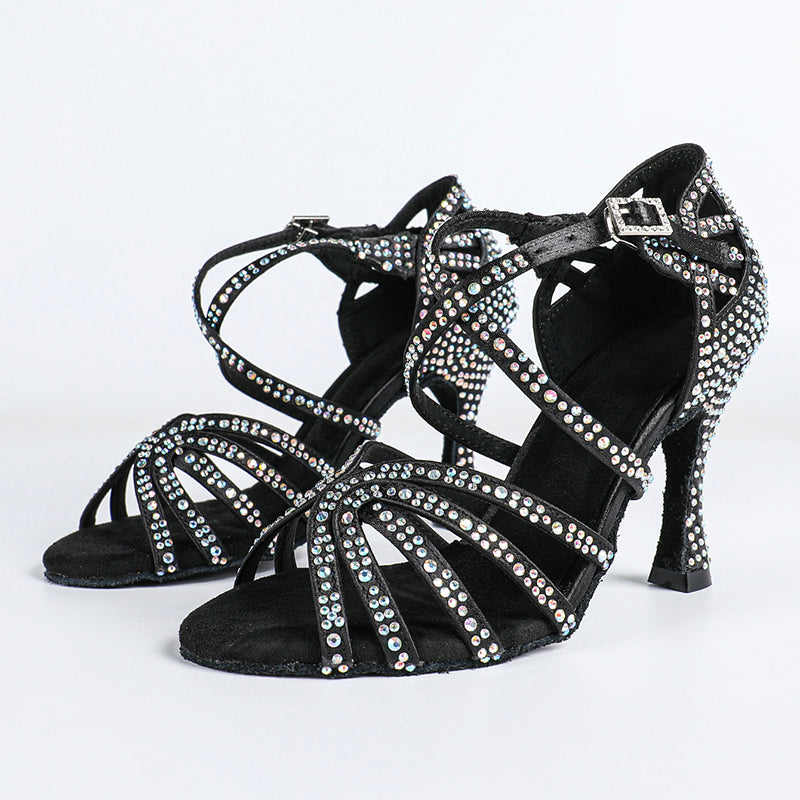 Women's Satin Black Rhinestone Customized Heel Latin Shoes Salsa Shoes Ballroom Dance Shoes