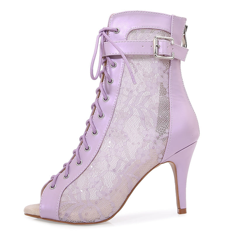 Women's Purple Customized Dance Heels Rubber Sole Peep Toe Lace-up Jazz Shoes Dance Boots