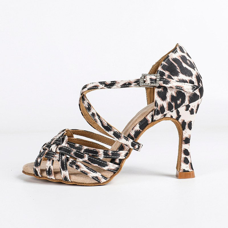 DS Women's Silk Satin Customized Heel Leopard Latin Dance Shoes Ballroom Dance Shoes Dance Heels Salsa Dance Shoes