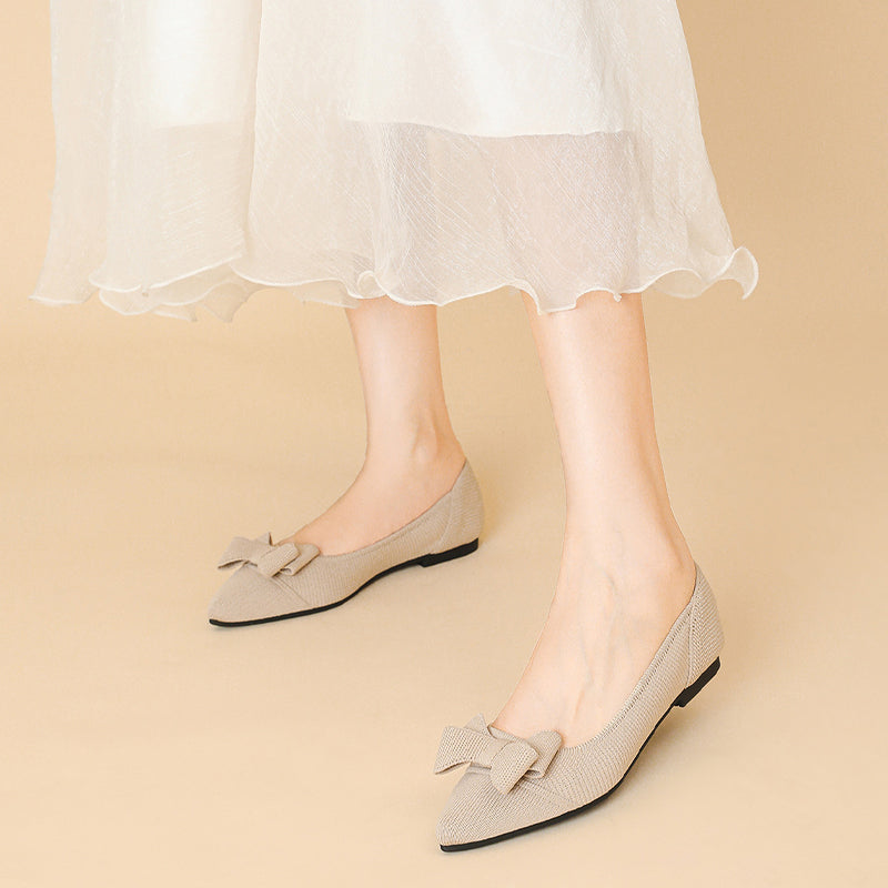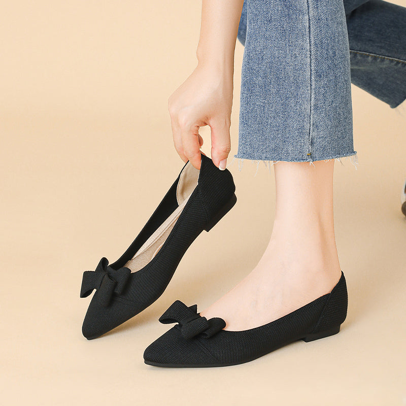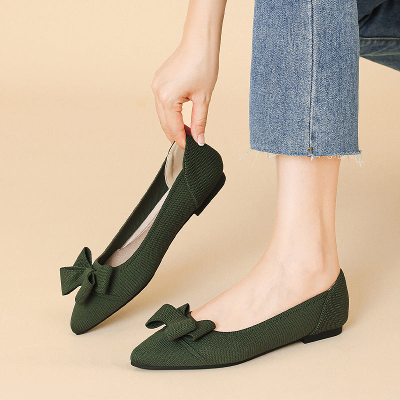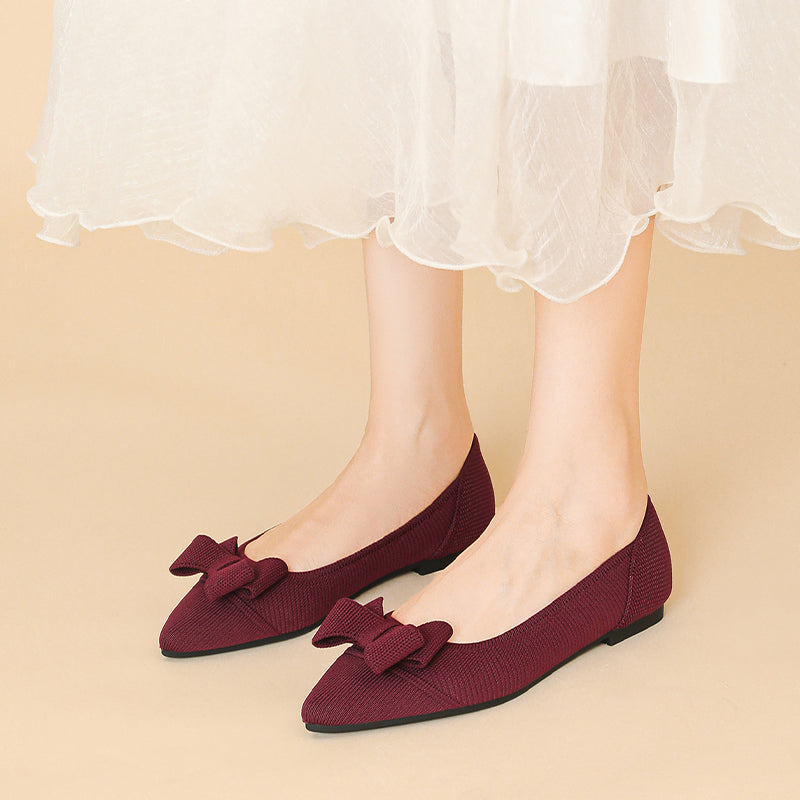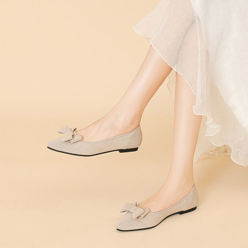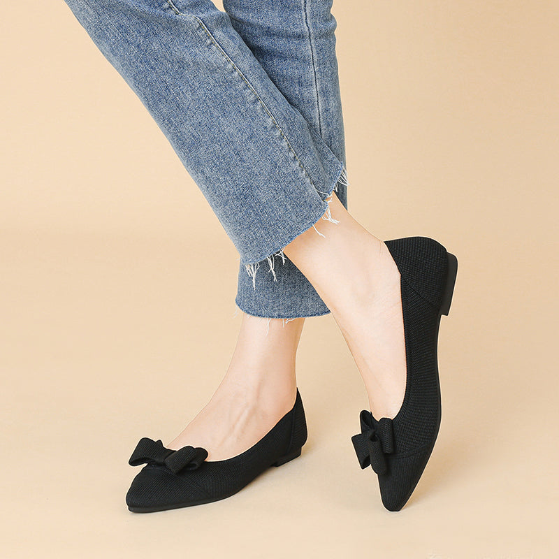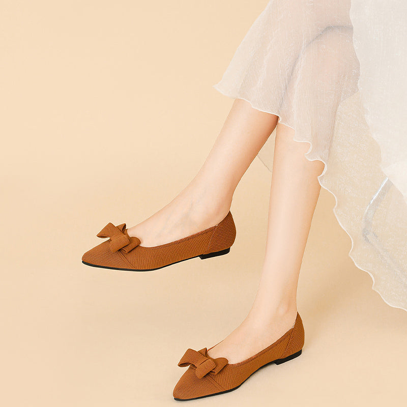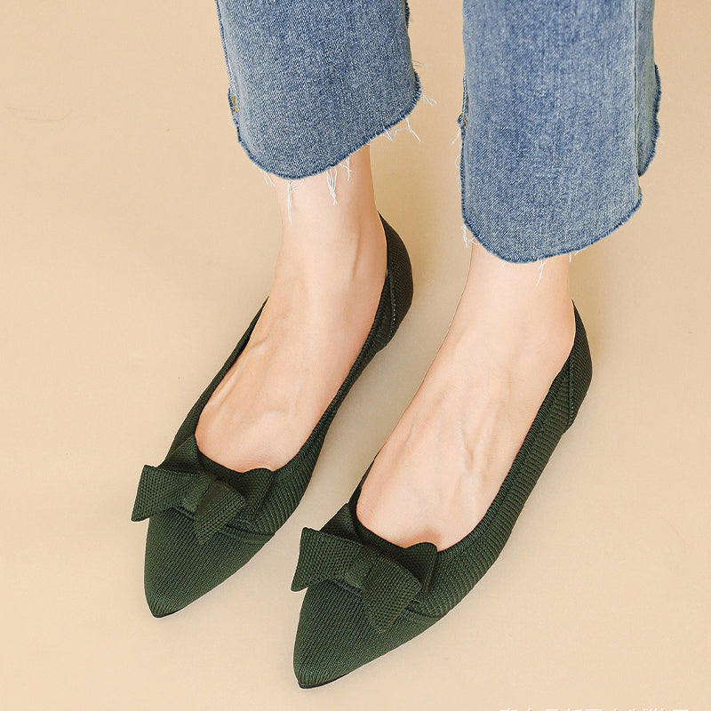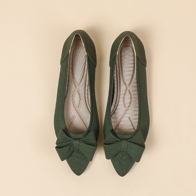 Women's Bow Solid Pointed Toe Knit Ballet Flats