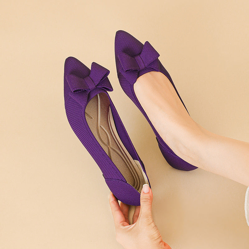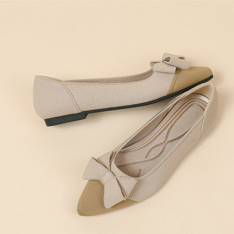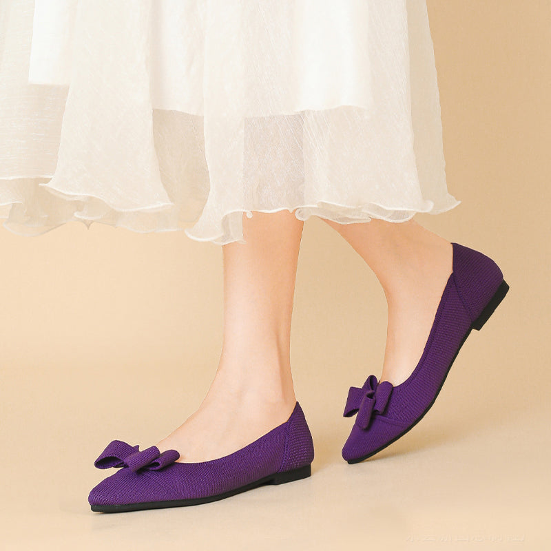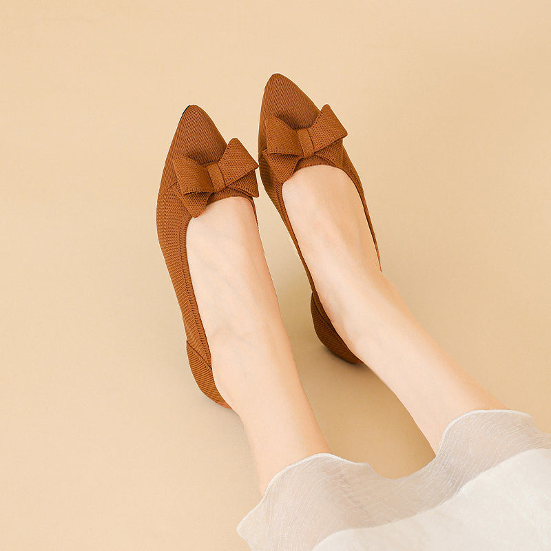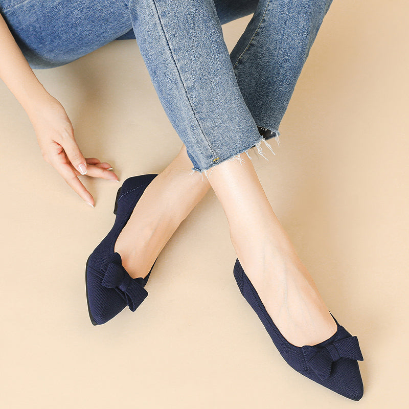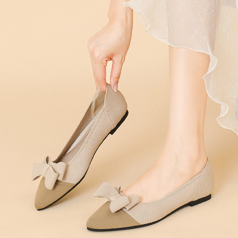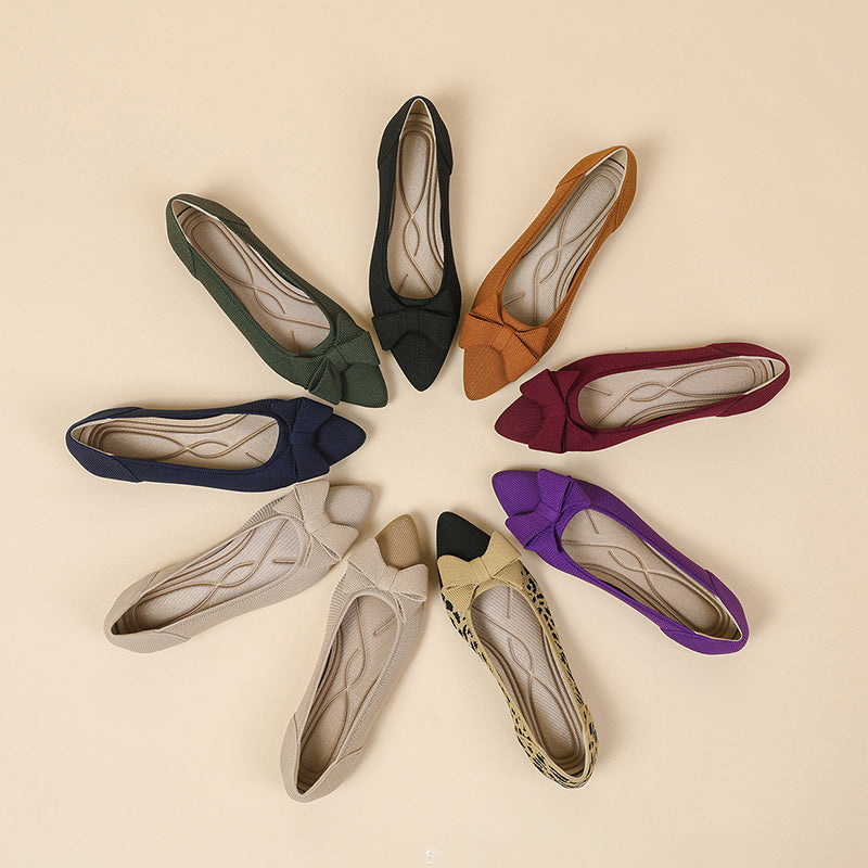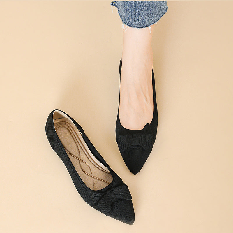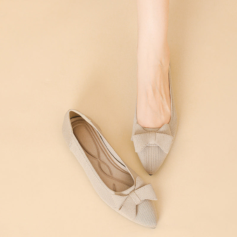 Women's Bow Solid Pointed Toe Knit Ballet Flats