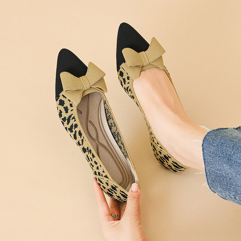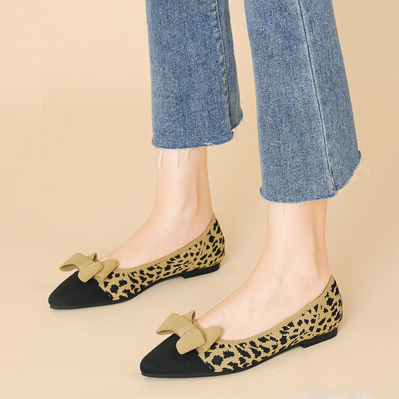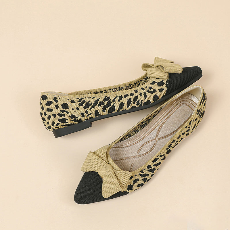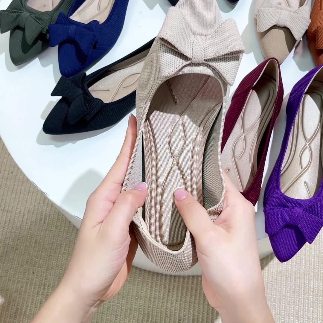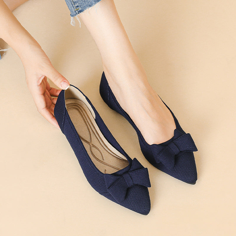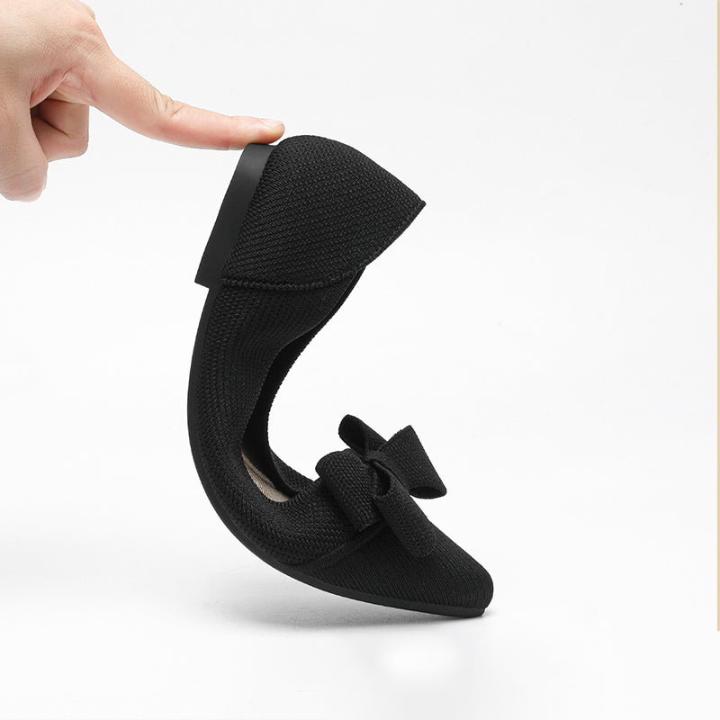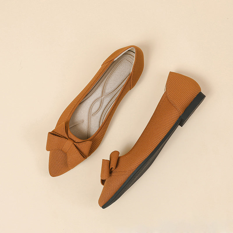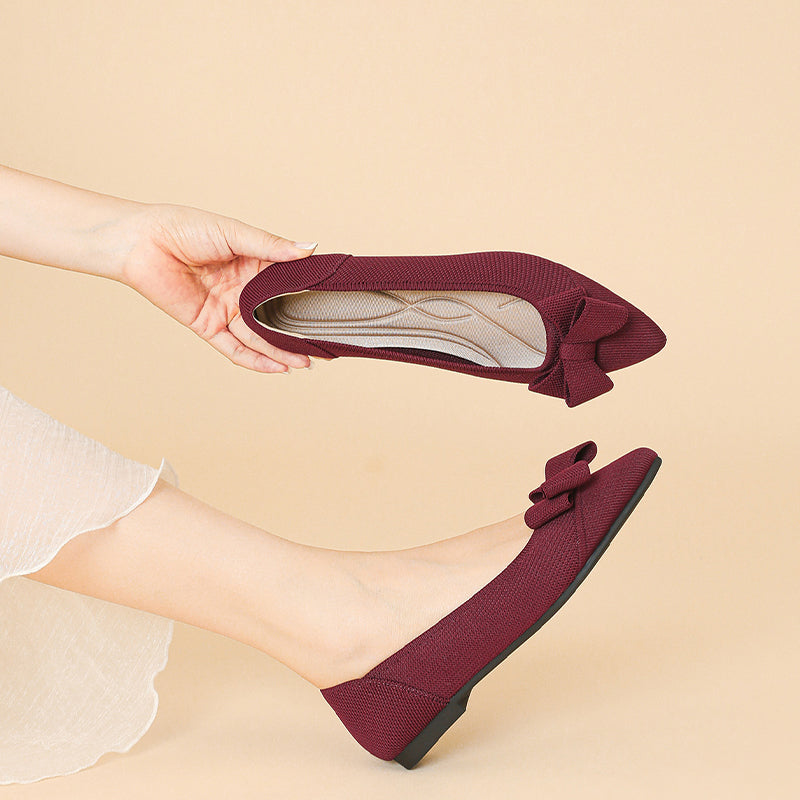 Women's Bow Solid Pointed Toe Knit Ballet Flats