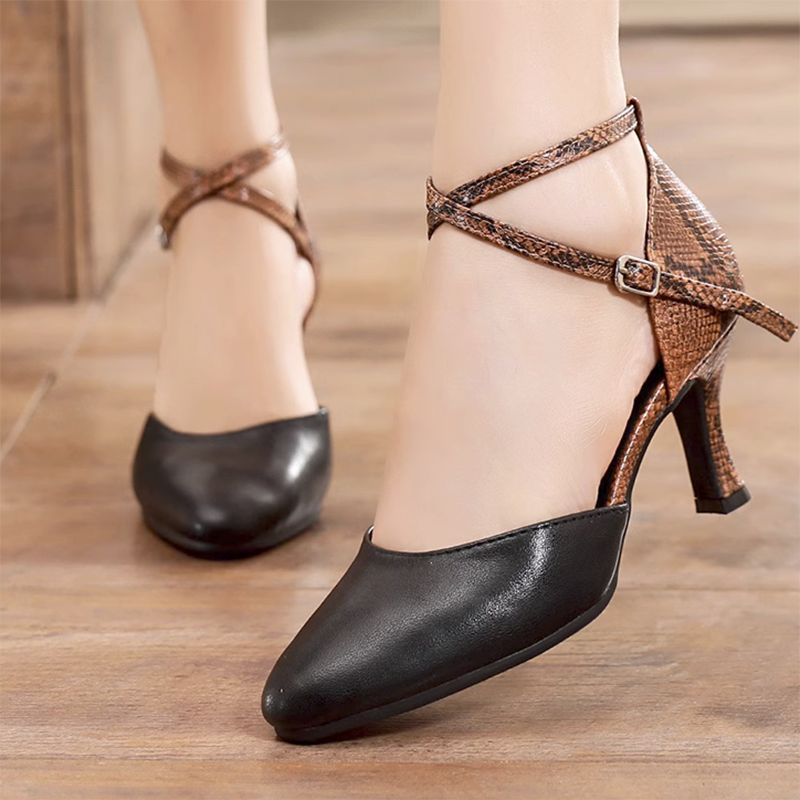 FHX Women's Black Leatherette Customized Heels Ballroom Dance Shoes Modren Shoes