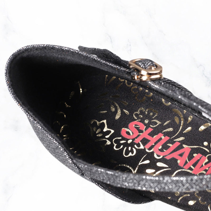 KCDANCE Women's Leatherette Black 7.5cm Heel Ankle Strap Latin Dance Shoes Ballroom Dance Shoes