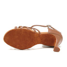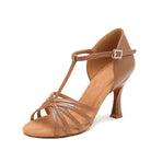 Women's Brown Customized Heel T-Strap Latin Dance Shoes Ballroom Dance Shoes