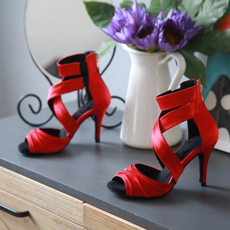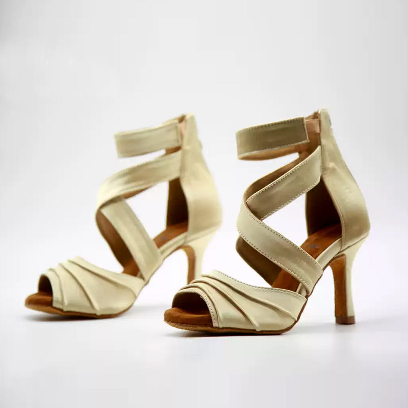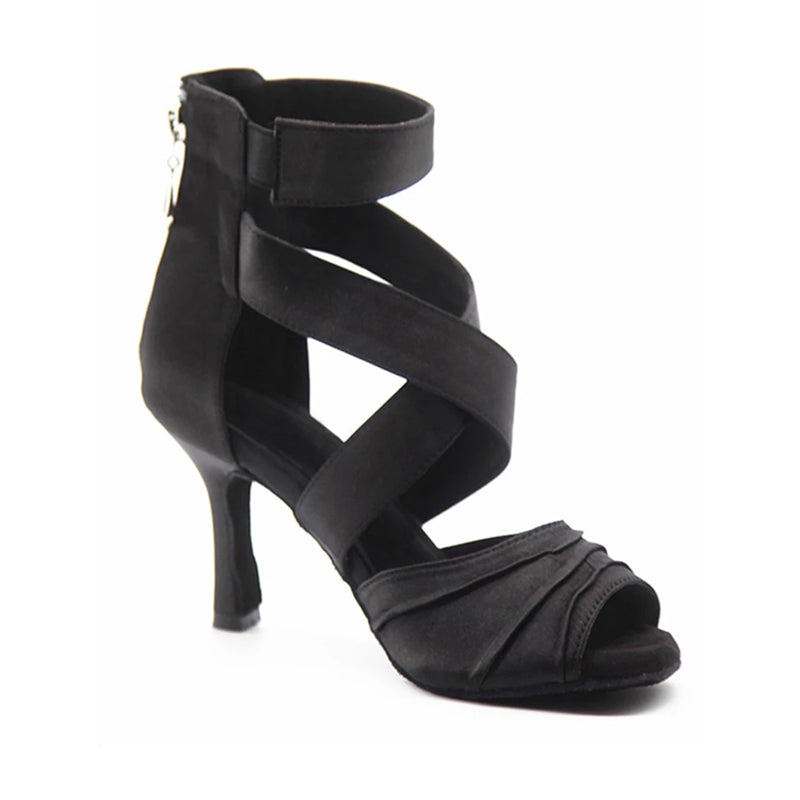 DS Women's Satin Customized Heel Dance Boots Salsa Dancing Shoes