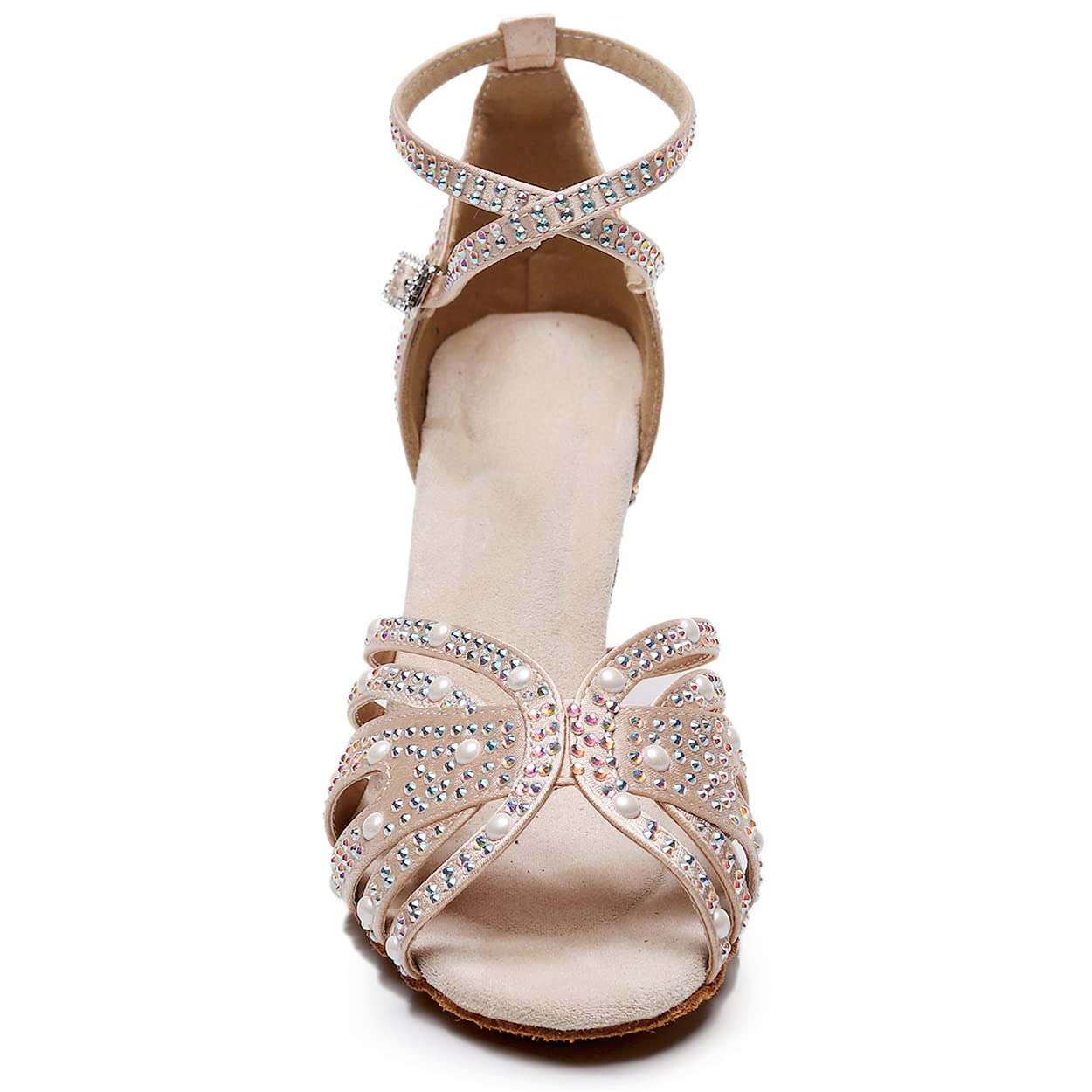 Women's Satin Customized Heel Latin Shoes Salsa Shoes Ballroom Dance Shoes With Rhinestone